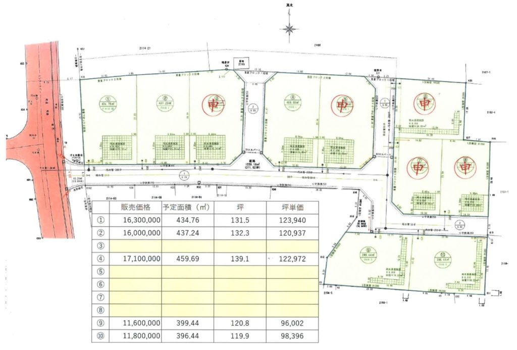 | 土地面積 | 396.44㎡(119.9坪)〜459.69㎡(139.1坪) |